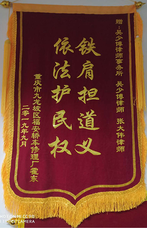 張帆、趙玉璽收到江西客戶贈送的錦旗